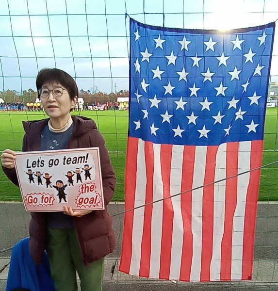 11月25日、女子決勝戦は日本対アメリカ、Jスタジアムで行われました。時折降ってくる雨にも負けず、日本応援団は熱かったです。私もにわかですが、手話で「いけ!」「大丈夫、がんばって!」「ニッポン!ちゃ・ちゃ・ちゃ!」などを覚え、声援やリードの太鼓とともに、観客席から手話応援エールを送り続けました。