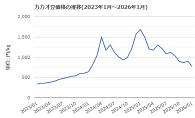 主要産地の西アフリカの異常気象などにより、カカオ豆は、2年で4倍ともいわれる価格上昇が続いて、メーカー各社は相次いで価格を改定しました。